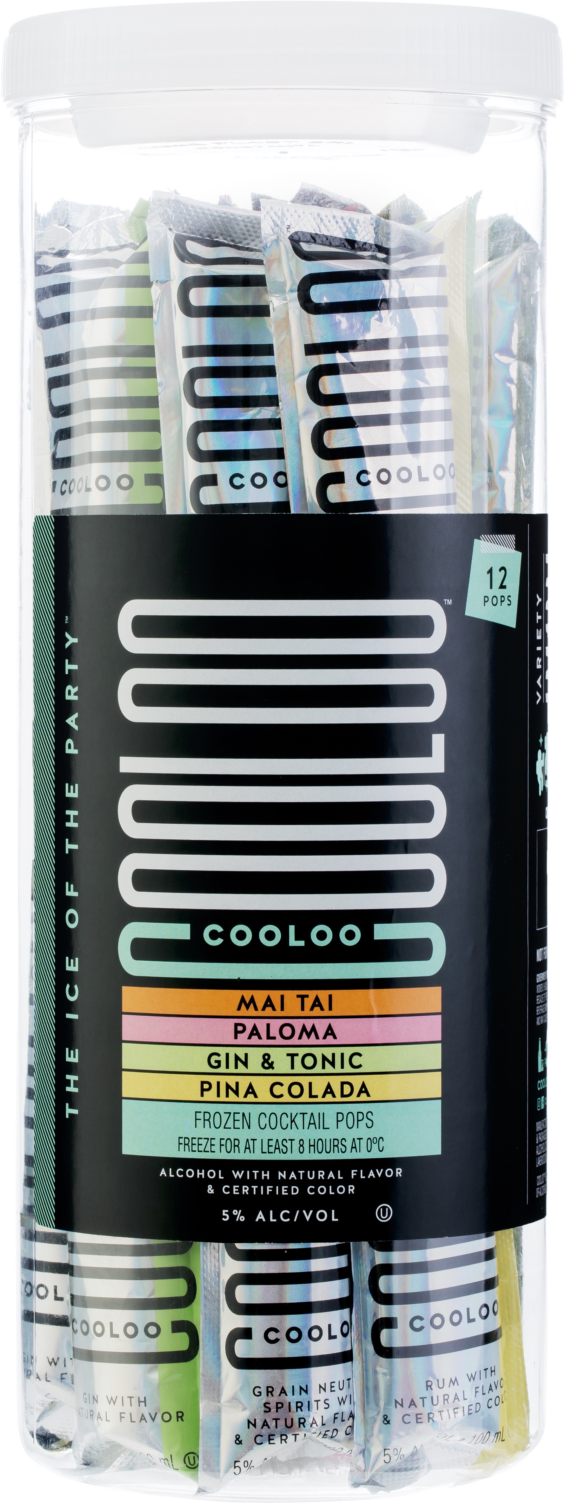 "Frozen cocktails to grab and go. Four varieties, are all alcohol infused with a smooth sorbet-like texture. 12 pops per pack including 3 each of Mai Tai, Pina Colada, Paloma and Gin & Tonic. Freeze for at least hours and separate pops for a faster freeze." Tasting Notes