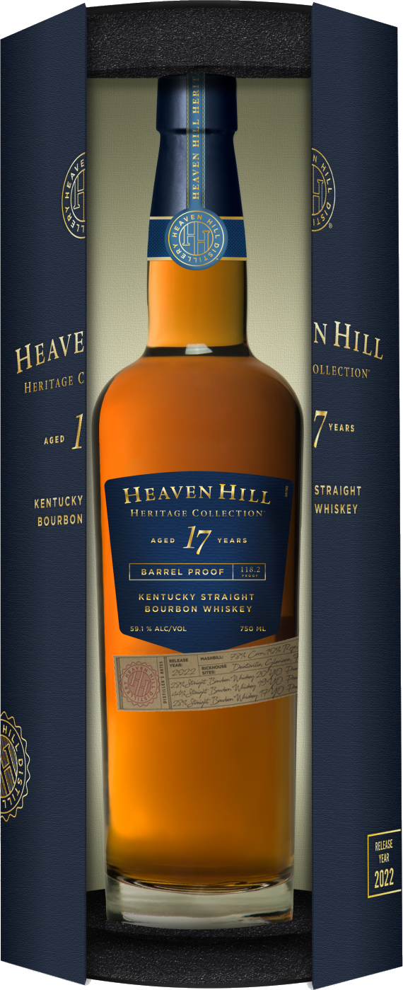 "The Heaven Hill Heritage Collection first edition release is a 17-year -old Kentucky Staight Bourbon Whiskey that is non-chilled-filtered and bottled at a barrel proof of 118.2. The liquid consists of a mingling of 28% 20-year old barrels, 44% 19-year-old barrels, and 28% 17-year-old barrels. The mashbill uses 78% corn, 10% rye, and 12% malted barley." -Tasting Notes