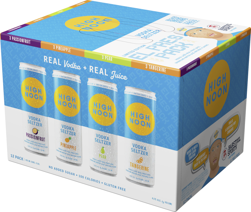 "The El Pres 12 pack features the top four High Noon Vodka Seltzer flavors as ranked by El Pres himself, Barstool Sports' Dave Portnoy. These flavors include Passionfruit, Pineapple, Pear and an all-new flavor, Tangerine. 3 cans of each flavor!" Producer Notes