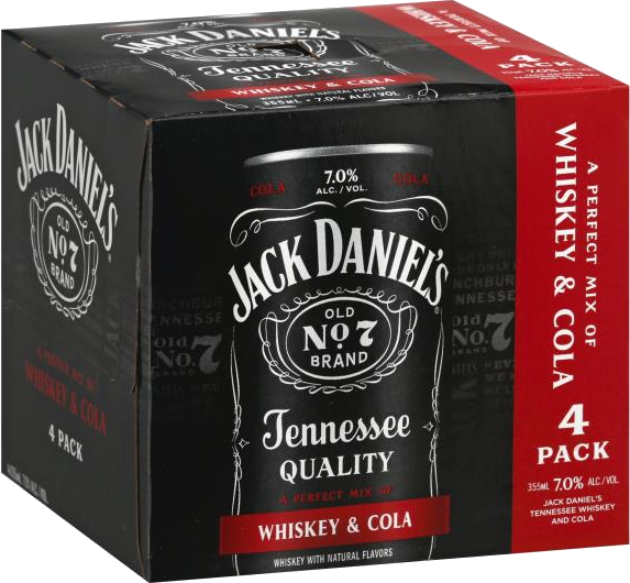 "This combination of Jack Daniel's and cola is perfectly mixed and ready to drink. You can enjoy them on the go, straight from the fridge, or out of the cooler. Comes in four 355ml cans." Tasting Notes