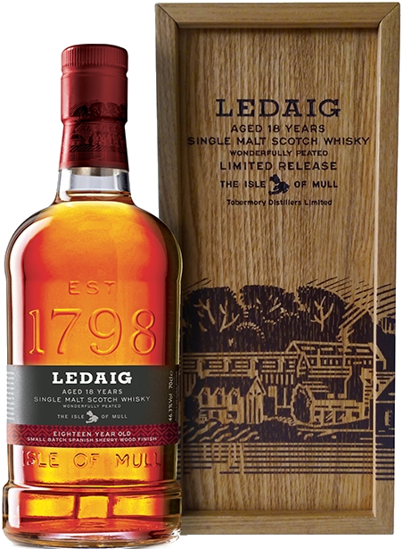 "All natural, 100% un-chill filtered with no added coloring. A quite aromatic nose with balanced American notes. Floral, malty, grassy, vanilla and honey with hints of tobacco and nutmeg. The palate is sweet and spicy with citrus, barley sugar, gingerbread, honey and white pepper flavors. Finishes dry and spicy with a warning gingery honeyed tail. A heavily peated whisky finished in Ex-Spanish Olorosso Sherry barrels for over 7 months." Tasting Notes