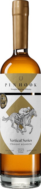 "A limited series of 13 consecutive annual vintages that follows a single group of MGP barrels as they mature from 4-16 years of age. Non-chill filtered. Blended from just 75 barrels, the 2025 Vertical Series Bourbon showcases a deep nose of burnt orange, brioche, butterscotch, and clove, and leads to a rich palate of brandied cherry, salted caramel, candied pecan, and cinnamon stick." Tasting Notes