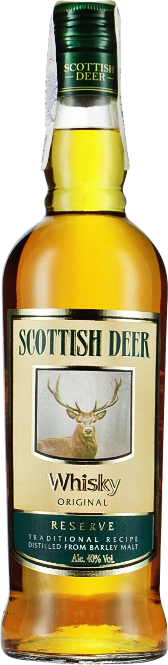 "Scottish Deer Whiskey is made from barley malt using original scottish technology and aged 3 years. It feature smooth taste with the notes of roasted peanuts, dried apples, and vanilla." Producer Notes