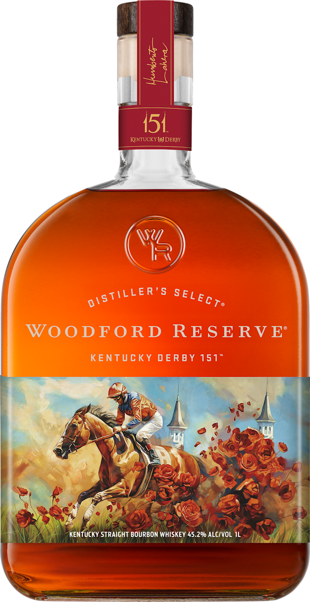 "Woodford Reserve, 'Presenting Sponsor of the Kentucky Derby,' celebrates the 151st running of the world's most famous race with the Kentucky Derby 151 Commemorative Bottle. This year's bottle features the artwork of artist Humberto Lahera. His painting, 'Carrera Dinamica,' which translates to 'Dynamic Race', captures the energy of the Kentucky Derby with vivid colors, expressive brushstrokes, and fluid motion, reflecting the spirit of the race. " Tasting Notes