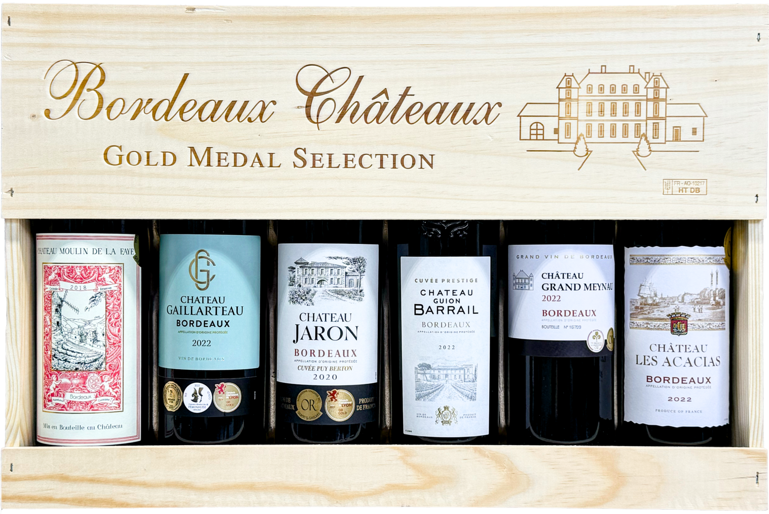 This pack contains six premier bottles of bordeaux in a fashionable wood box. Each pack contains the following: Château Moulin de la Faye 2018 Chateau Les Acacias 2022 Chateau Gaillarteau 2022 Chateau Jaron-Civee Puy Berton