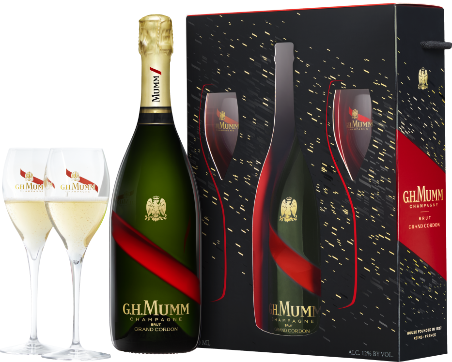 "A fresh and balanced Champagne in the aperitif style, with the creamy mousse carrying flavors of ripe yellow apple, toast point and candied lemon peel. A hint of smoky mineral shows on the finish. Pinot Noir, Chardonnay and Pinot Meunier. Drink now." 91 Points, Wine Spectator Gift set includes one 750ml bottle and two champagne glasses.